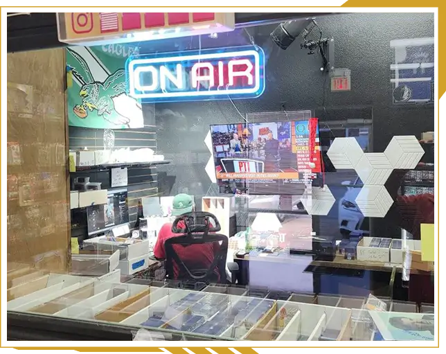 Located in Mansfield, Texas, our brick-and-mortar shop is a welcoming space for collectors to connect, trade, and explore. Whether you’re chasing a grail card, looking to sell, or just want to talk shop, our doors are always open.